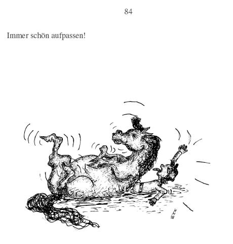 Und wenn diese kleine Lektüre dazu beiträgt, den ein oder anderen Menschen nicht unter die Räder.. äh unters Pferd kommen zu lassen, dann hat es sich gelohnt, dass wir nicht im Sattel saßen, sondern zeichnend und schreibend hieran gearbeitet haben. |